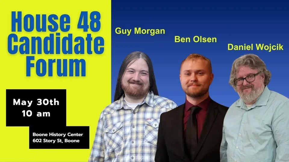 The Boone County Democrats and Story County Democrats are pleased to sponsor this forum and Q and A session with our three candidates for the Democratic nomination for House District 48 , which covers all of Boone and part of Story County. Please come with questions and be willing to challenge them!